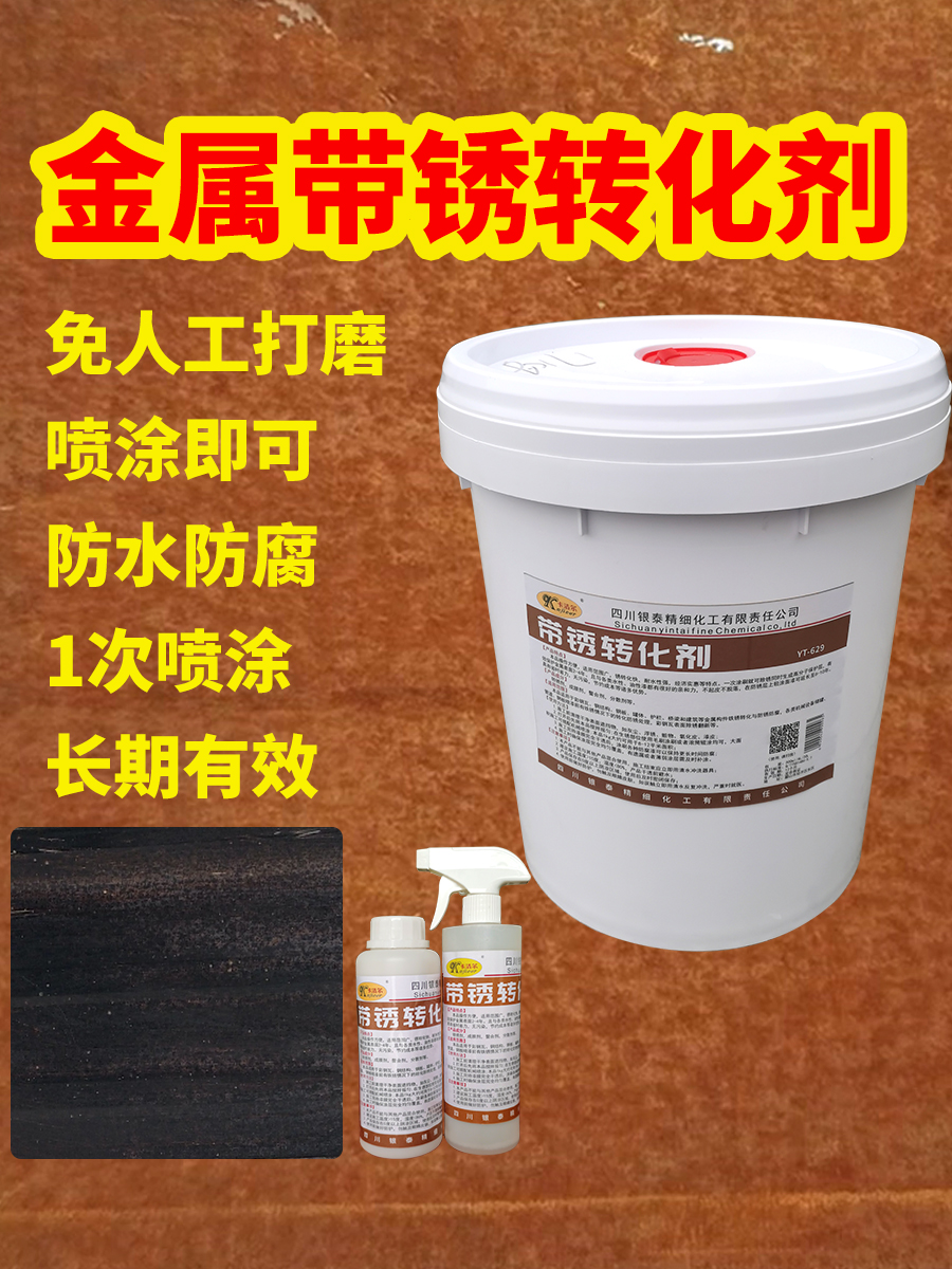 本品適用于鋼鐵、鋼結(jié)構(gòu)機(jī)械設(shè)備儲(chǔ)罐,管道,鋼板噴漆前有鐵銹條件下的轉(zhuǎn)化防銹處理,除銹,防銹一次完成,為基材提供長(zhǎng)期防銹保護(hù)。本品將基材表面的銹蝕轉(zhuǎn)化為疏水鈍化層,和傳統(tǒng)體系相比,帶銹轉(zhuǎn)化劑會(huì)提供更長(zhǎng)久的保護(hù),更廣泛的適應(yīng)性,更簡(jiǎn)單的操作。本品涂覆蓋于已生銹的金屬表面生成高分子聚合物,再配合水性漆搭配使用,讓基材可以更長(zhǎng)時(shí)間不生銹,并在施工過(guò)程中,無(wú)需除銹工序。