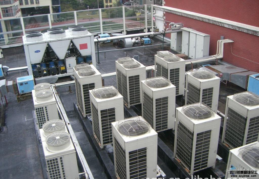 2.冷卻水系統(tǒng)每噸加清洗藥劑5-8kg,冷凍水系統(tǒng)每噸加清洗藥劑3-4kg,分別分兩次加入。第一次加入計(jì)劃藥量的一半,運(yùn)行15天后,排放一半污水。再補(bǔ)足清水,加入剩余的一半藥劑,再運(yùn)行10-20天后,用清水置換清洗廢液至清澈。